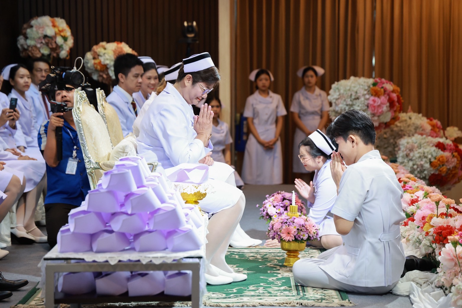 ตัวแทนชมรมช่อพุดน้ำบุษย์ ศิษย์เก่าพยาบาลสวนดุสิต รุ่นที่ ๑๔ ได้แก่ อาจารย์วริศรา ประทุมจำปา และ พว.ปฏิภาณ พิมพ์สอาด เป็นตัวแทนถือพานไหว้ครู ในพิธีไหว้ครูและมอบหมวกพยาบาล ประจำปีการศึกษา ๒๕๖๘ ณ คณะพยาบาลศาสตร์ มหาวิทยาลัยสวนดุสิต วันที่ ๑๙ มิถุนายน ๒๕๖๘
